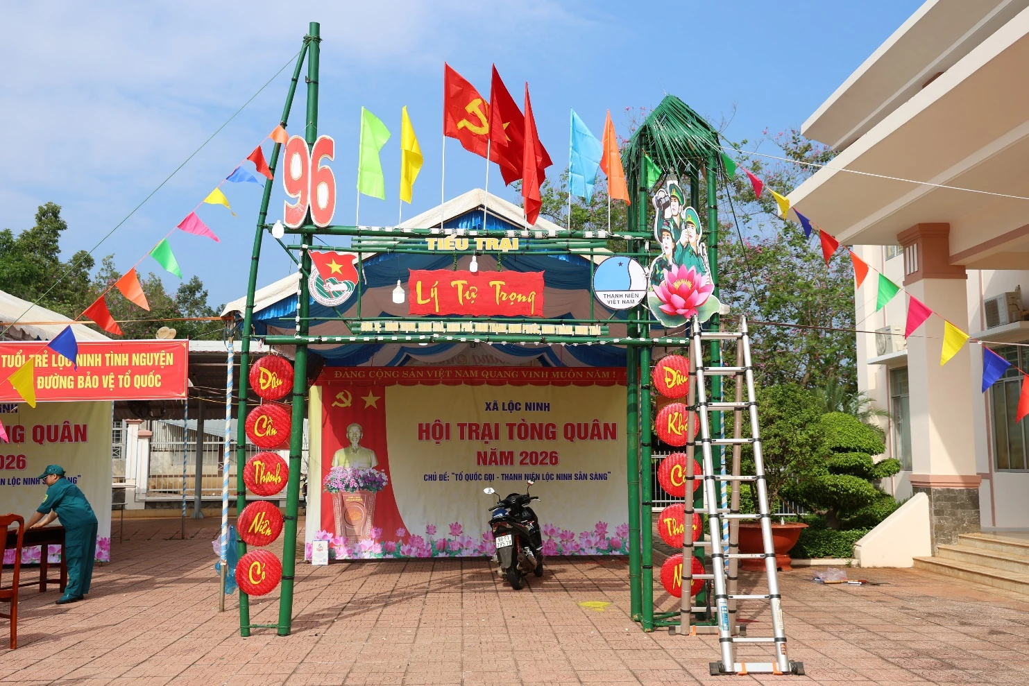 Sáng ngày 02/3/2026, tại khuôn viên Trung tâm Chính trị xã Lộc Ninh, công tác dựng các tiểu trại chuẩn bị cho Hội trại Tòng quân năm 2026 của xã Lộc Ninh cơ bản đã hoàn thiện. Các cổng trại được đầu tư công phu, chu đáo và sáng tạo, thể hiện nét đẹp truyền thống Quân đội nhân dân Việt Nam, hình ảnh quê hương đổi mới cùng những thông điệp ý nghĩa gửi gắm đến thanh niên lên đường nhập ngũ.