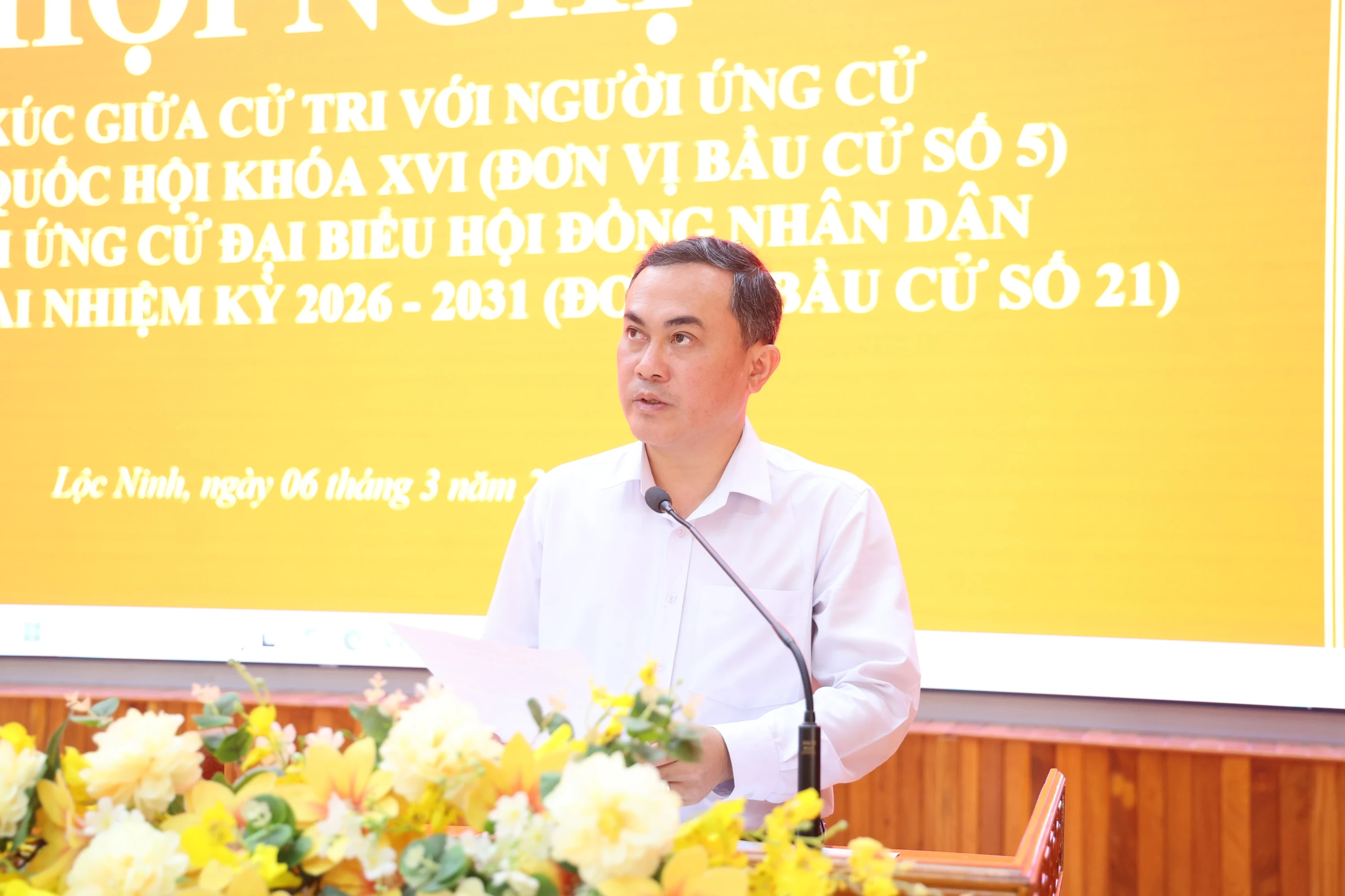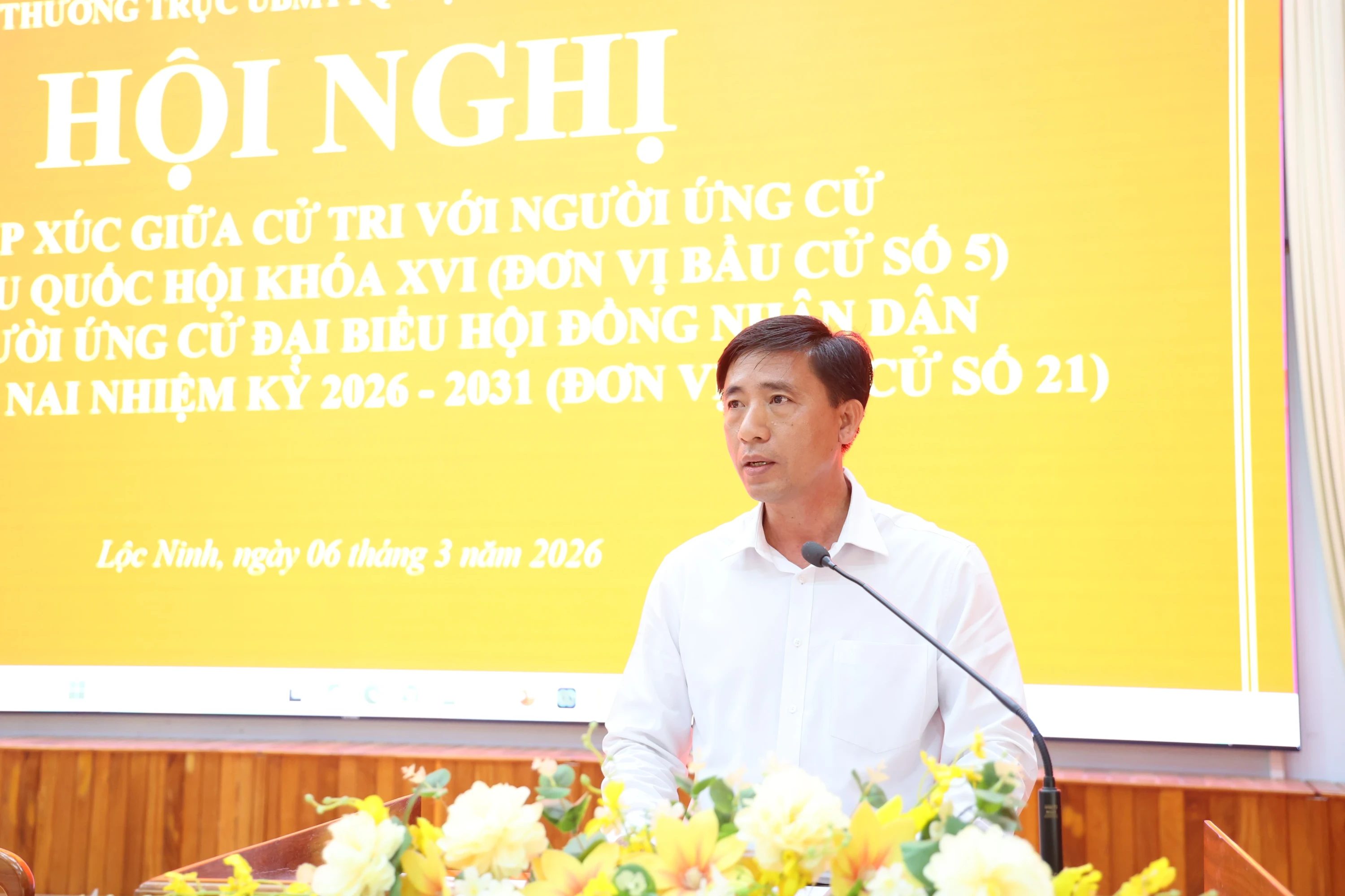 Tham dự hội nghị có đại diện lãnh đạo tỉnh Đồng Nai, các sở, ngành của tỉnh, các ứng cử viên cùng đông đảo cử tri trên địa bàn các xã Lộc Ninh, Lộc Hưng, Lộc Thành, Lộc Tấn, Lộc Thạnh, Lộc Quang, Tân Tiến của tỉnh Đồng Nai.