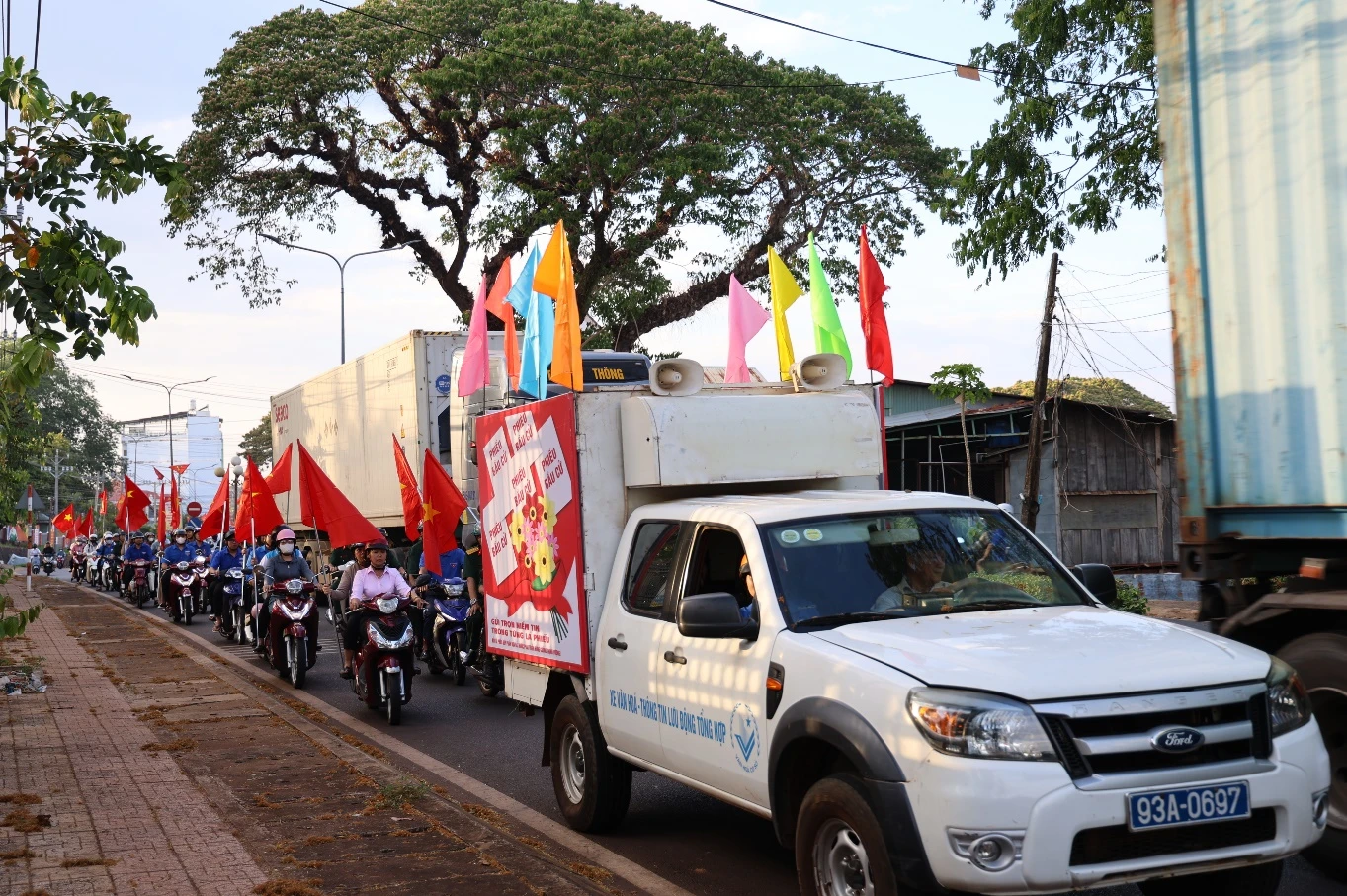 <p style="font-family:&#039;Times New Roman&#039;,serif; font-size:14pt; text-align:justify; text-indent:1.5cm; line-height:1.5;">Tham gia hoạt động có đông đảo cán bộ, hội viên, đoàn viên thanh niên trên địa bàn xã. Ngay sau lễ phát động, các lực lượng cán bộ, hội viên, đoàn viên thanh niên và người dân đã tham gia tuyên truyền lưu động trên các tuyến đường chính, các khu dân cư trên địa bàn xã bằng xe máy mang cờ Tổ quốc, cờ tuyên truyền; xe ô tô được trang trí cờ, hoa cùng hệ thống loa tuyên truyền, băng rôn, khẩu hiệu với các nội dung về Luật Bầu cử, quyền và nghĩa vụ của cử tri, thời gian và các bước tiến hành bầu cử.</p>