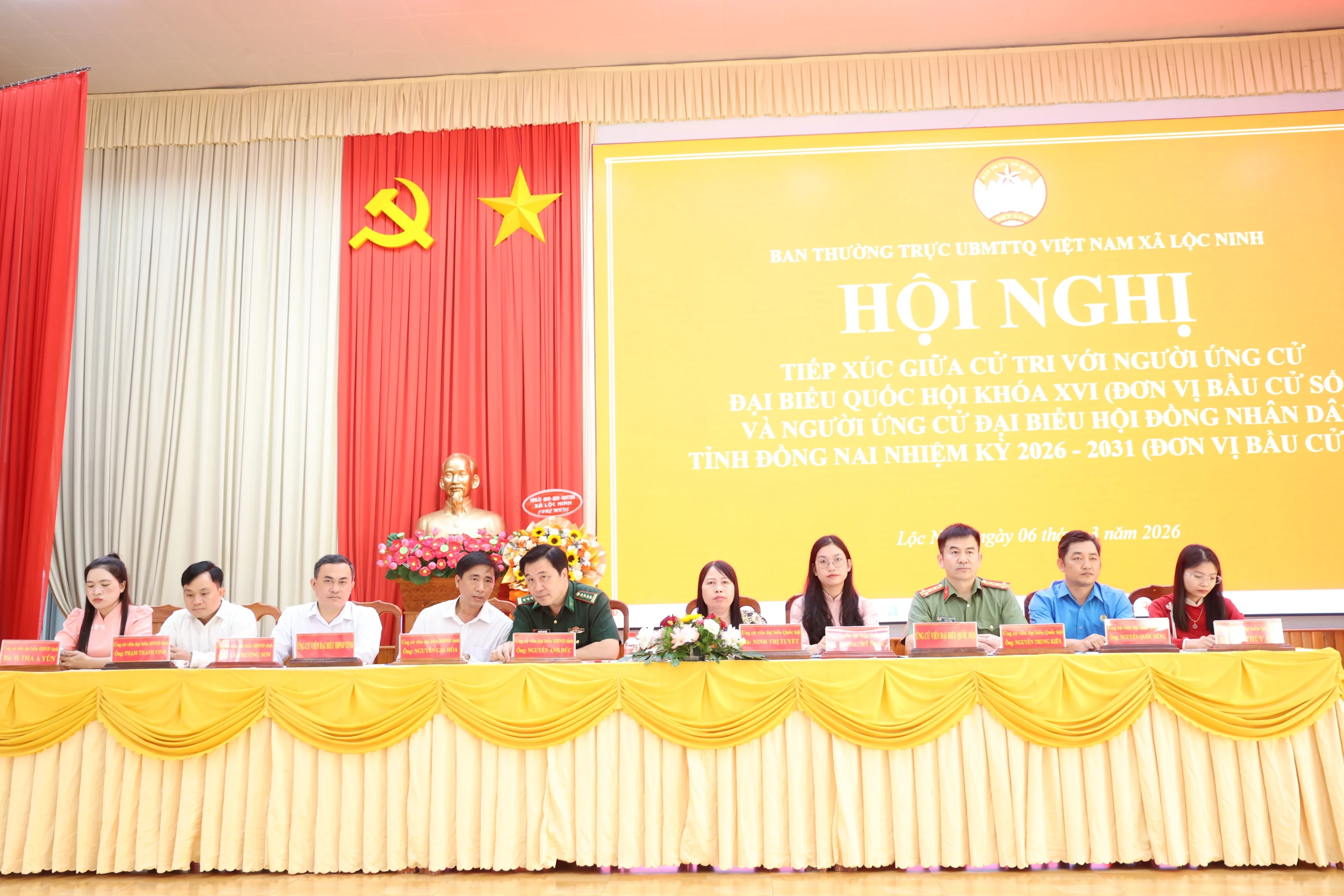 Sáng ngày 06/03/2026, Ủy ban Mặt trận Tổ quốc Việt Nam xã Lộc Ninh tổ chức Hội nghị tiếp xúc cử tri với người ứng cử đại biểu Quốc hội khóa XVI (đơn vị bầu cử số 5) và đại biểu Hội đồng nhân dân tỉnh Đồng Nai nhiệm kỳ 2026 - 2031 (đơn vị bầu cử số 21).