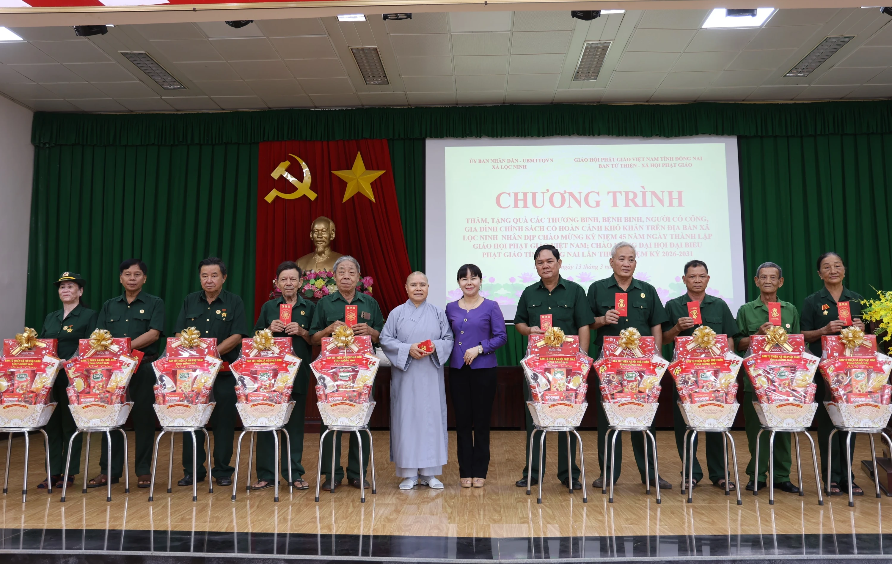 Ngày 13/03/2026, Ban Từ thiện - Xã hội, Giáo hội Phật giáo tỉnh Đồng Nai phối hợp với UBND - Ủy ban Mặt trận Tổ quốc Việt Nam xã Lộc Ninh tổ chức chương trình thăm, tặng quà các thương binh, bệnh binh, người có công, gia đình chính sách có hoàn cảnh khó khăn trên địa bàn xã.
